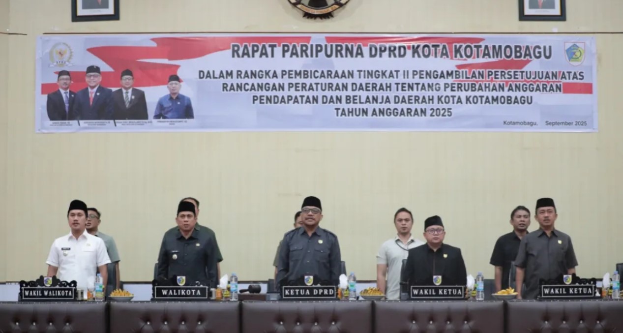 TNews, KOTAMOBAGU – Wali Kota Kotamobagu, Weny Gaib, menghadiri Rapat Paripurna DPRD Kota Kotamobagu dalam rangka pengambilan persetujuan atas rancangan peraturan daerah (Ranperda) Perubahan APBD Kota Kotamobagu tahun 2025, bertempat di gedung DPRD Kotamobagu, Jumat (26/9/2025).
