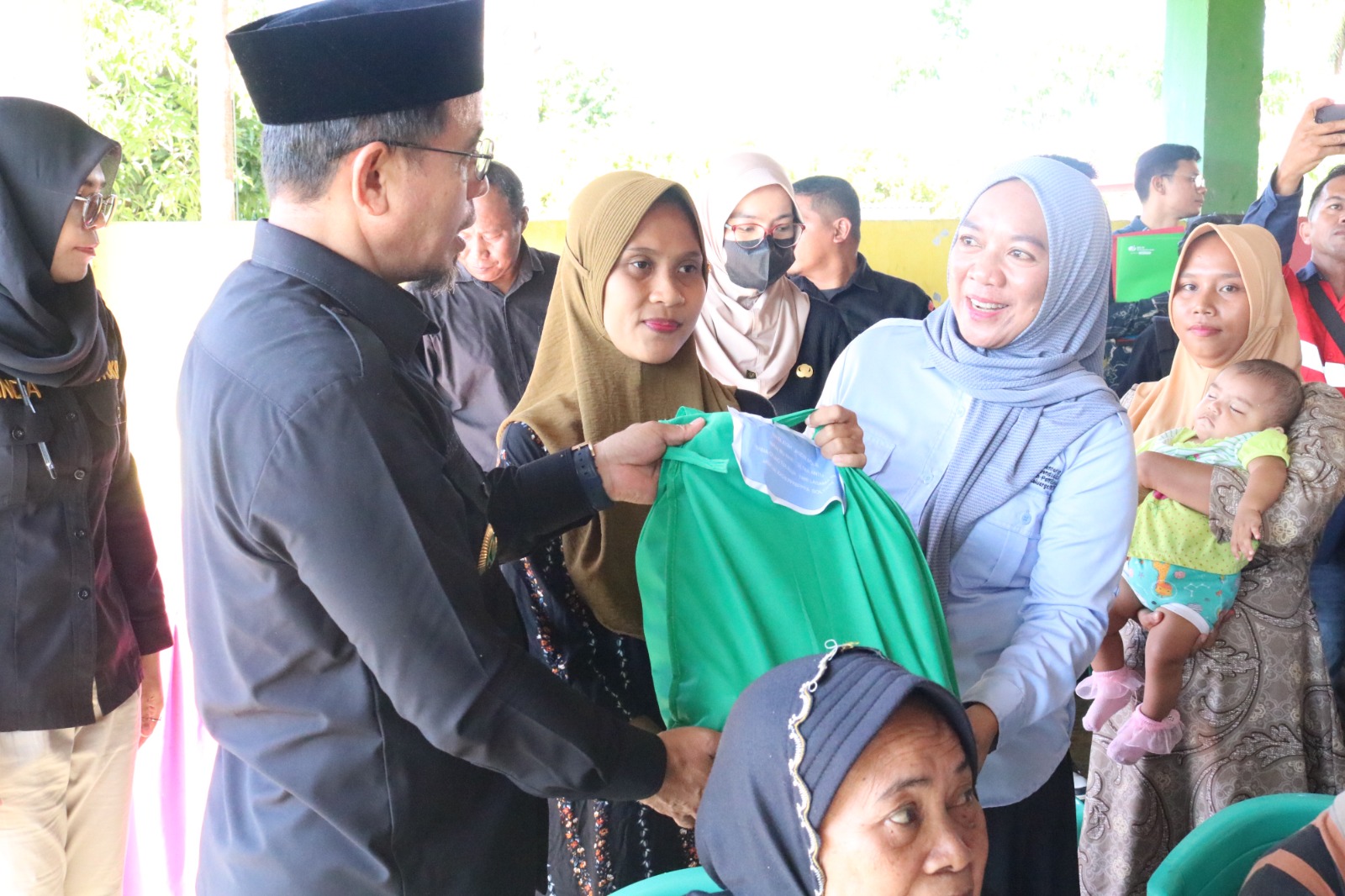 Gambar: Kepala Dinas PPKBPPPA Bolaang Mongondow Utara Saat turun lapangan membagikan bantuan bagi keluarga berencana.