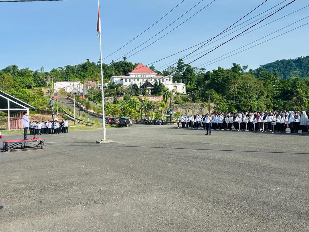 TNews, BOLSEL – Suasana Lapangan Apel Kawasan Perkantoran Panango, Kecamatan Bolaang Uki, tampak tetap ramai meski hari pelaksanaan apel kerja tidak seperti biasanya. Jajaran aparatur sipil negara (ASN) Pemerintah Kabupaten Bolaang Mongondow Selatan mengikuti apel kerja mingguan yang digelar pada Rabu (14/12/2026).