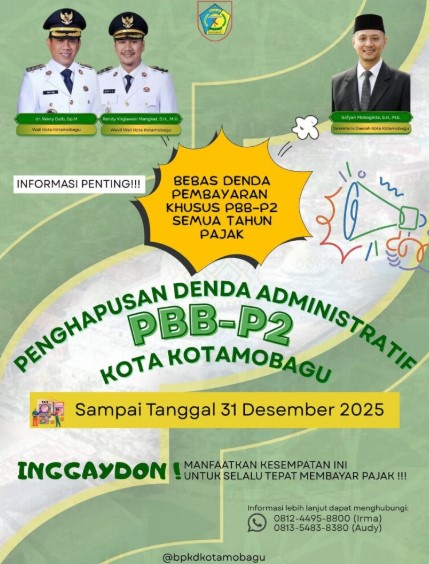“Kami mengimbau seluruh wajib pajak di Kota Kotamobagu agar segera memanfaatkan kebijakan penghapusan denda administrasi PBB sebelum 31 Desember 2025,” tambahnya.