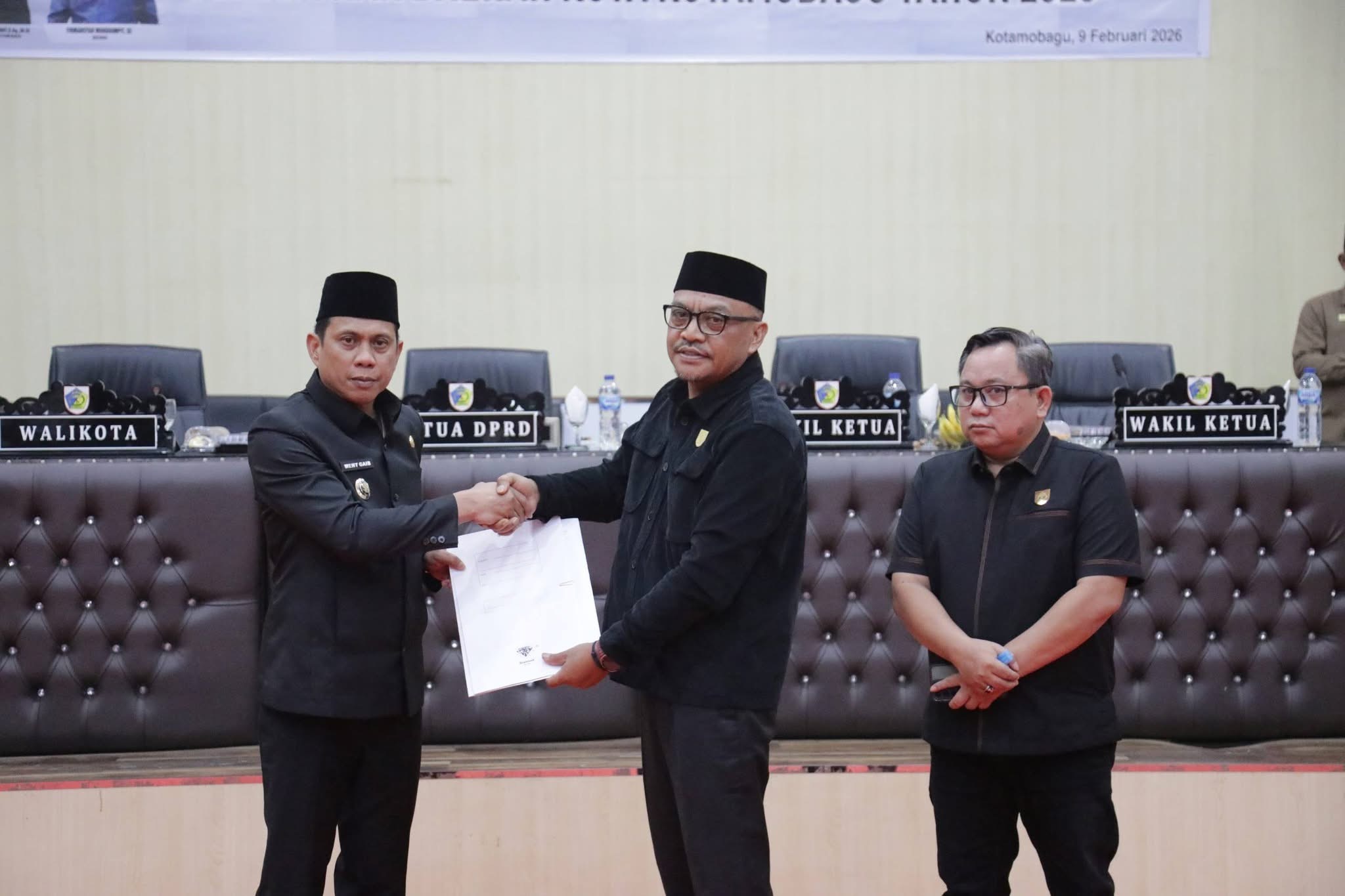 TNews, KOTAMOBAGU – Wali Kota Kotamobagu, dr. Weny Gaib, Sp.M, menghadiri Rapat Paripurna Dewan Perwakilan Rakyat Daerah Kota Kotamobagu dalam rangka Penetapan Program Pembentukan Peraturan Daerah (Propemperda) Tahun 2026, yang dilaksanakan di Ruang Sidang Kantor DPRD Kotamobagu, Senin (09/02/2026).