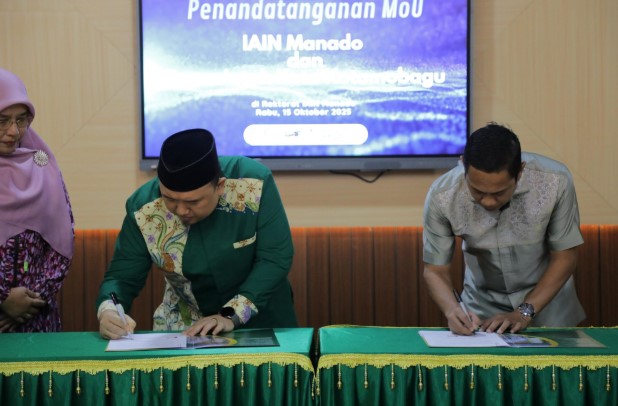 Antara Pemerintah Kota Kotamobagu dan IAIN Manado tentang Peningkatan Mutu Pendidikan dan Sumber Daya Manusia, Penelitian, serta Pengabdian kepada Masyarakat. Kegiatan penandatanganan berlangsung di Gedung Kampus IAIN Manado,Rabu (15/10/2025).