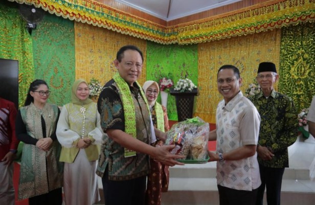 TNews, KOTAMOBAGU – Wali Kota Kotamobagu, dr. Weny Gaib, Sp.M., bersama Ketua TP PKK Kota Kotamobagu, Ny. Rindah Gaib Mokoginta, S.E., M.Ec.Dev., menerima kunjungan silaturahmi Gubernur Provinsi Gorontalo, Dr. Ir. Gusnar Ismail, M.M., dan Ketua TP PKK Provinsi Gorontalo, Ny. Ir. Nani Ismail Mokodongan, M.M.